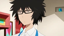 Like the other attendants of Higarashi High School, he wears the typical uniform with nothing too special or unique — a blue blazer, black pants, black tie, and white dress shirt. Instead of the regular shoes, he wears brown shoes instead, and has a watch on his left wrist.